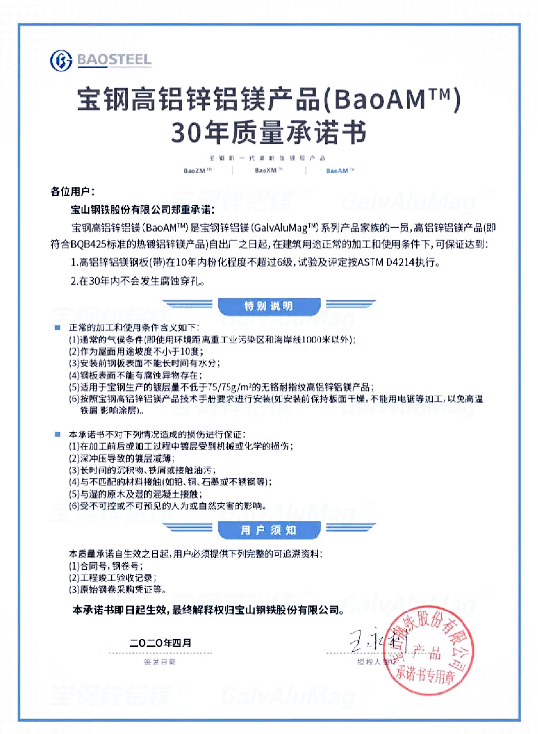 寶鋼鍍鋁鋅鎂BaoAM?    質保超過30年以上