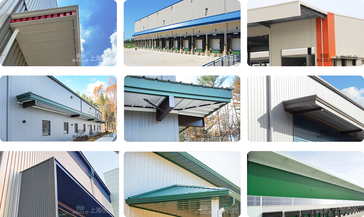 卸貨大雨棚:懸挑6~8米,采用同屋面的直立鎖縫板 ;